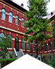 Veghind, parcă, de la distanţă, intrarea de la Propilee spre luxurianta curte interioară a Liceului „Roman-Vodă”, vila Calistrat Hogaş – numită astfel de noi deoarece aici a trăit ca director al şcolii şi a murit autorul „Drumurilor de munte” – deşi, funcţional, face corp comun cu edificiul principal, totuşi, arhitectonic, se detaşează mult, constituind, pentru oraşul muşatin, una din zidirile de o accentuată personalitate. Singura mărturie de apartenenţă la un sistem unitar o reprezintă ţesătura sobră a cărămizilor aparente care, privite însă din anumite unghiuri, cedează în faţa întrepătrunderilor de forme şi ritm. Fiind de proporţii mai mici, prezenţa brâielor demilitative de nivel, din care unul îşi mai adaugă iluzia unui mic balcon continuu, apare mai voalată.